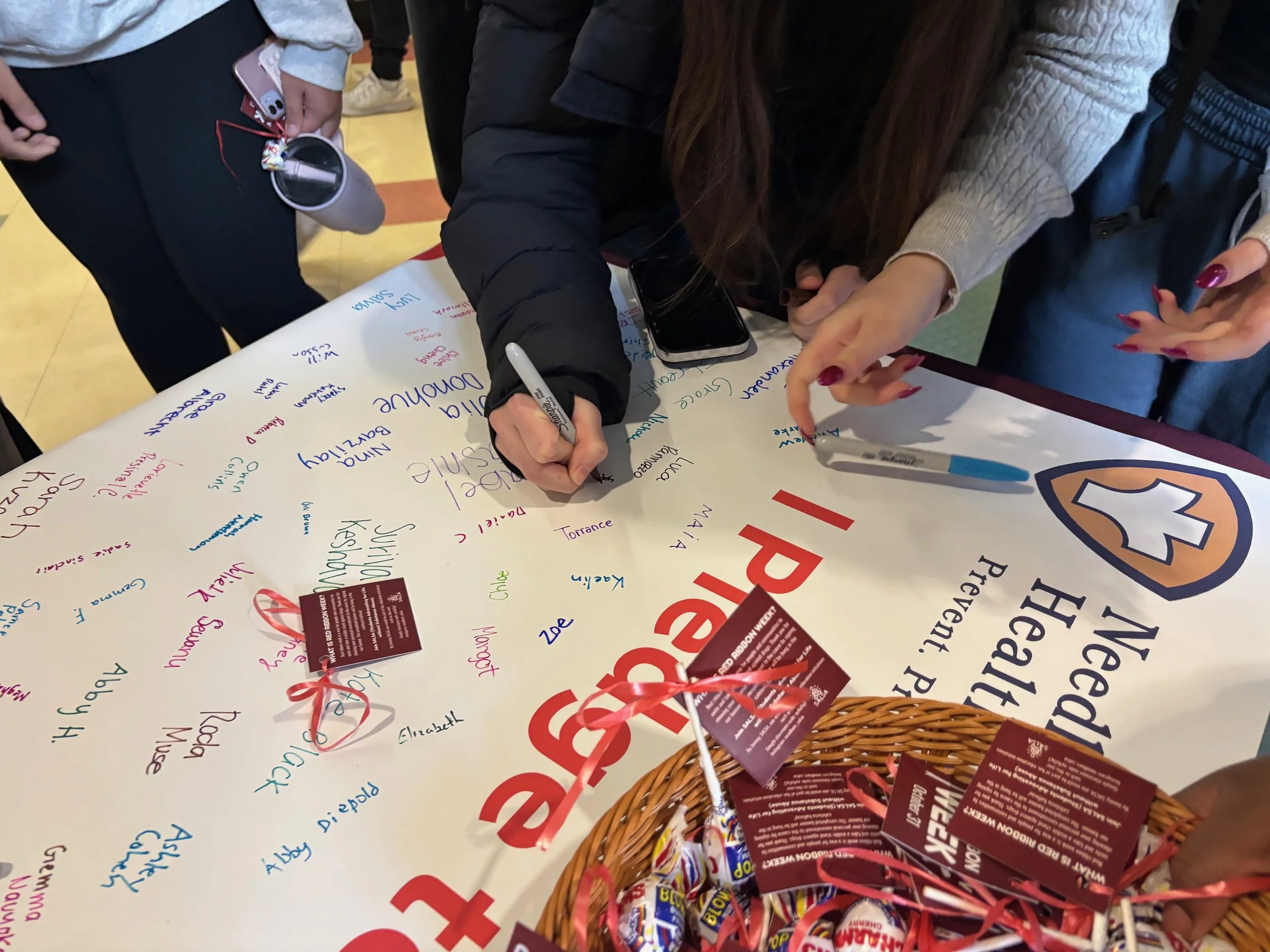 Today’s Red Ribbon Day banner signing was a big success! Hundreds of NHS students signed the banner and enjoyed a Halloween treat. Thank you to James for organizing the event and to the many SALSA volunteers who helped make it happen!